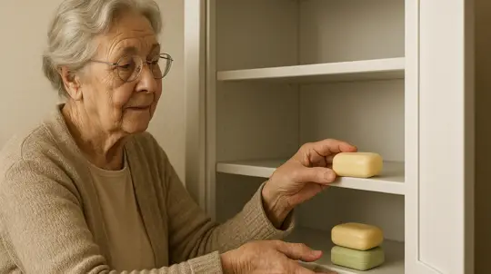 Небольшие кусочки мыла хорошо заменяют готовые ароматизаторы. Их помещают в тканевые мешочки и раскладывают между стопками одежды. Запах держится месяцами и помогает избежать затхлости, а заодно создает ощущение ухоженного пространства в шкафу. На практике такой способ работает особенно приятно с постельным бельем и трикотажем.